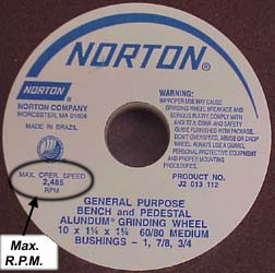NEVER operate a grinding wheel at speeds