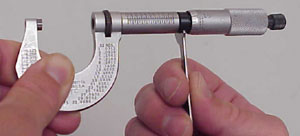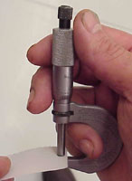 the anvil and spindle surfaces of the micrometer. Slide the paper