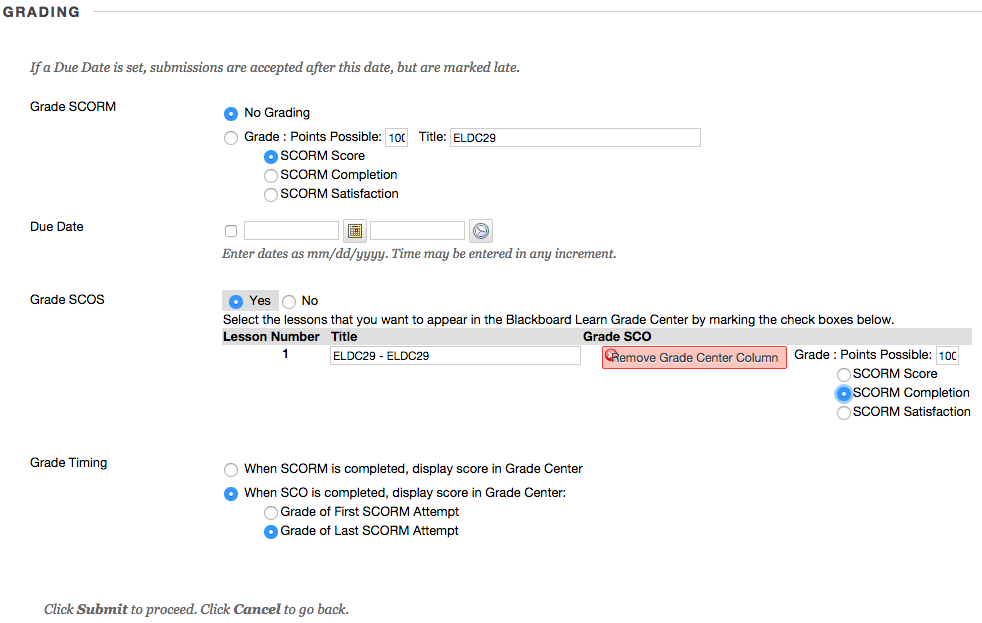 - Grade SCORM using Completion unless you have a graded quiz published to provide a score.